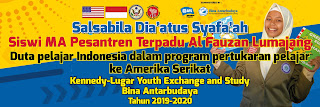 mapesteralfauzan.sch.id – Setelah melalui proses seleksi yang panjang, dalam kurun waktu 10 bulan lebih, akhirnya pada Februari 2019 kemarin, salah satu siswi MA Pesantren Terpadu Al Fauzan Lumajang, Salsabila Dia’atus Syafa’ah dinyatakan lolos seleksi pada program pertukaran pelajar ke Amerika Serikat selama satu tahun bersama Bina Antarbudaya selaku mitra dari AFS Intercultural Programs, Inc. Dijadwalkan berangkat pada 5 Agustus 2019 mendatang, MA Pesantren Terpadu (Pester) Al Fauzan Lumajang memanfaatkan momen Haflatul Imtihan ke 12